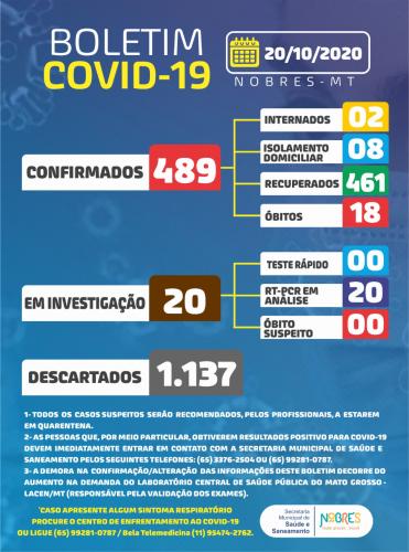 » BOLETIM EPIDEMIOLÓGICO DE 22 DE OUTUBRO DE 2020