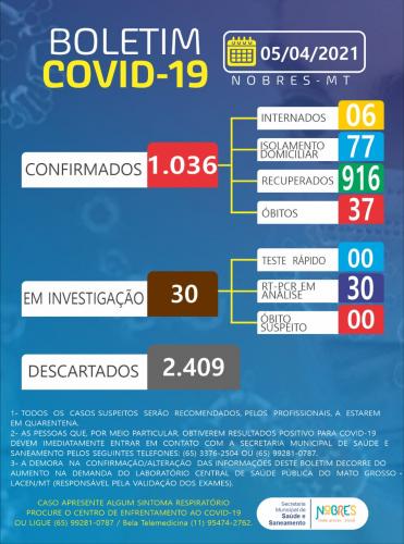 » BOLETIM EPIDEMIOLÓGICO DE 04 DE JANEIRO DE 2021