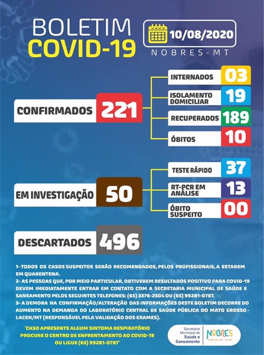 » BOLETIM EPIDEMIOLÓGICO DE 10 DE JULHO DE 2020