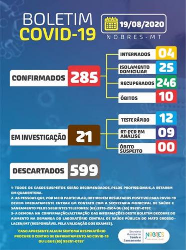 » BOLETIM EPIDEMIOLÓGICO DE 25 DE AGOSTO DE 2020