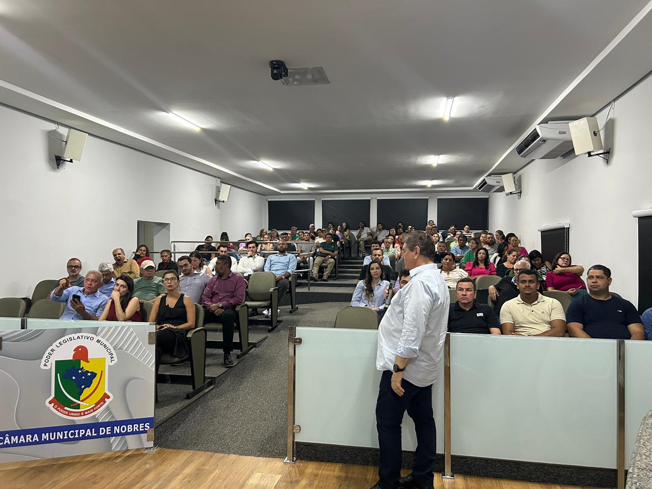 Na noite desta quarta-feira (24), a Prefeitura Municipal de Nobres, por meio da Secretaria Municipal de Turismo, Indústria e Comércio, realizou uma palestra voltada ao empreendedorismo e às linhas de crédito oferecidas pelo Desenvolve MT. O evento aconteceu no plenário da Câmara Municipal, que recebeu um público recorde, composto por empresários de diversos segmentos e autoridades locais.